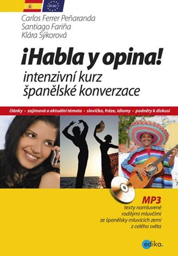 Edika, Brno 2014. 1. vyd. 215 s. První španělská učebnice v ČR, která je věnována výhradně výuce konverzace. Snahou autorů je předložit studentům zajímavá témata a dlouhou řadu modifikovaných aktivit, díky kterým mohou vyučující přizpůsobit výuku tak, aby vyhovovala jednotlivým skupinám, jejím potřebám, požadavkům a náladám. Učebnice obsahuje 20 lekci, ve kterých jsou rozvíjena současná společenská témata, každá lekce obsahuje grafický materiál, texty, podněty k diskusi, kreslené vtipy a nahrávky. Lekce doplňuji také cvičení určená k procvičování pokročilejší slovní zásoby. Učebnice obsahuje slovníček a CD. ISBN 978–80-266‑0450‑1. Kč 339,00.