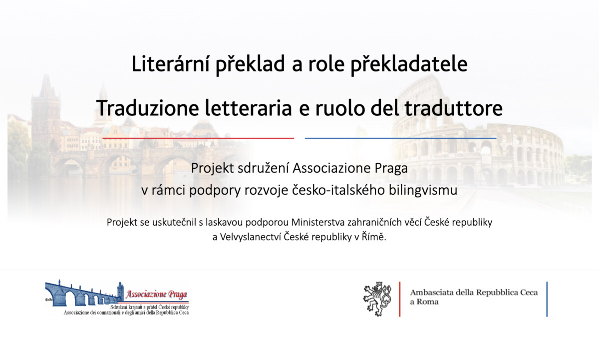 Literární překlad a role překladatele / Traduzione letteraria e il ruolo del traduttore 9:00 Registrace účastníků / Registrazione ospiti 9:30 Zahájení semináře / Inaugurazione del seminario Pozdravy / Saluti: J.E. Jan Kohout Velvyslanec České republiky v Itálii / Ambasciatore della Repubblica Ceca in Italia Kateřina Di Paola Zoufalová Předsedkyně Associazione Praga / Presidente dell’Associazione Praga...