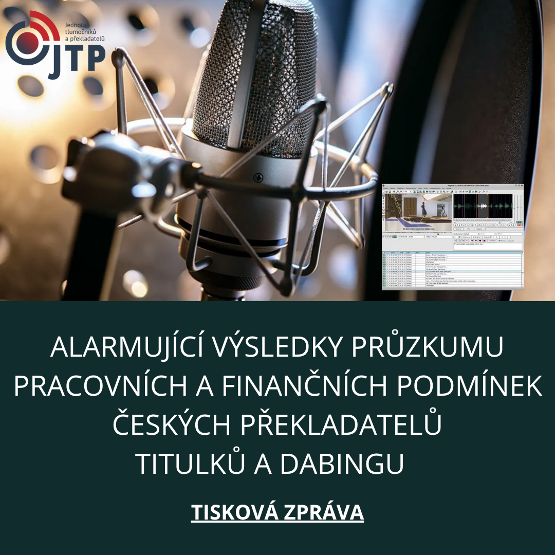 Se závěry průzkumu seznámí zástupci Jednoty tlumočníků a překladatelů veřejnost a média v bloku Pracovní podmínky audiovizuálních překladatelů v 15.00 na Jeronýmových dnech, které se konají 18. 10. 2025 v sídle JTP, Senovážné náměstí 23, Praha.