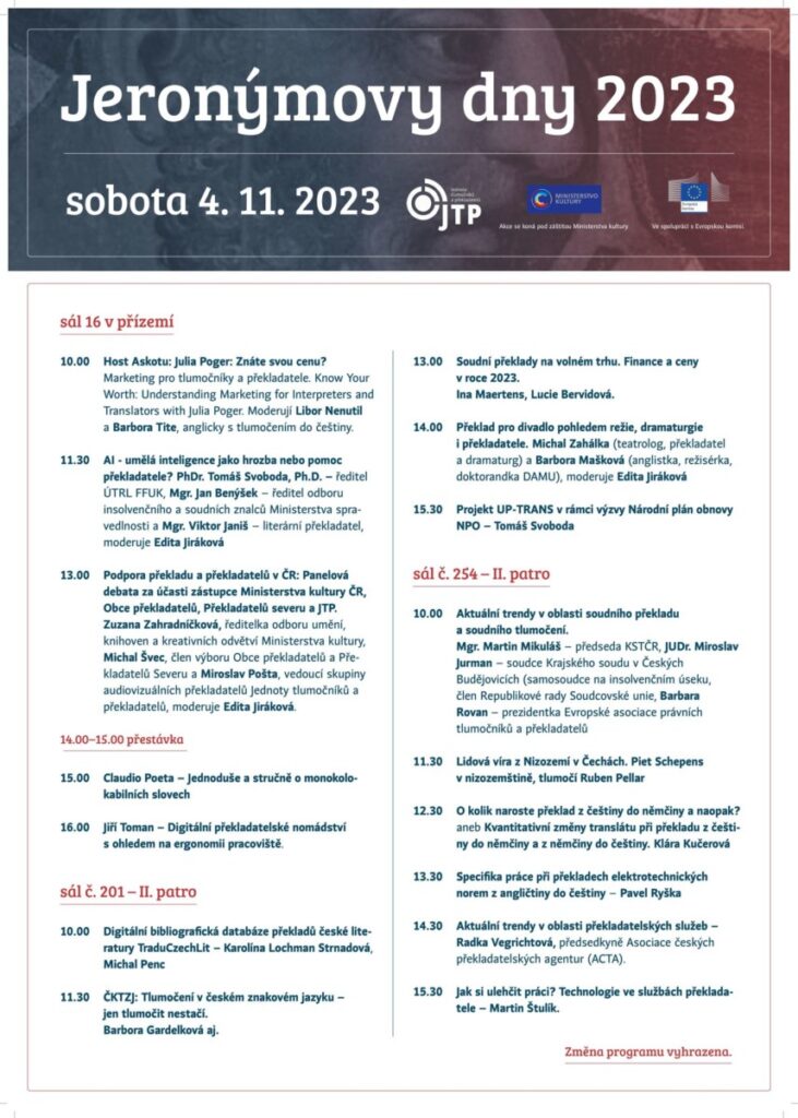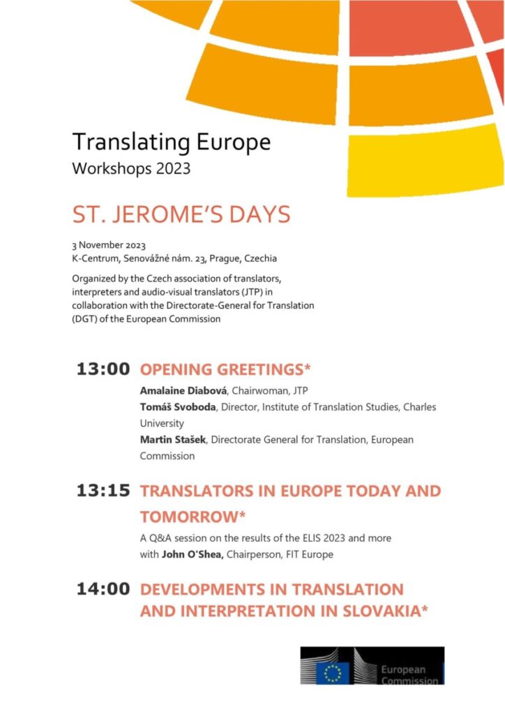 Se závěry průzkumu seznámí zástupci Jednoty tlumočníků a překladatelů veřejnost a média v bloku Pracovní podmínky audiovizuálních překladatelů v 15.00 na Jeronýmových dnech, které se konají 18. 10. 2025 v sídle JTP, Senovážné náměstí 23, Praha.